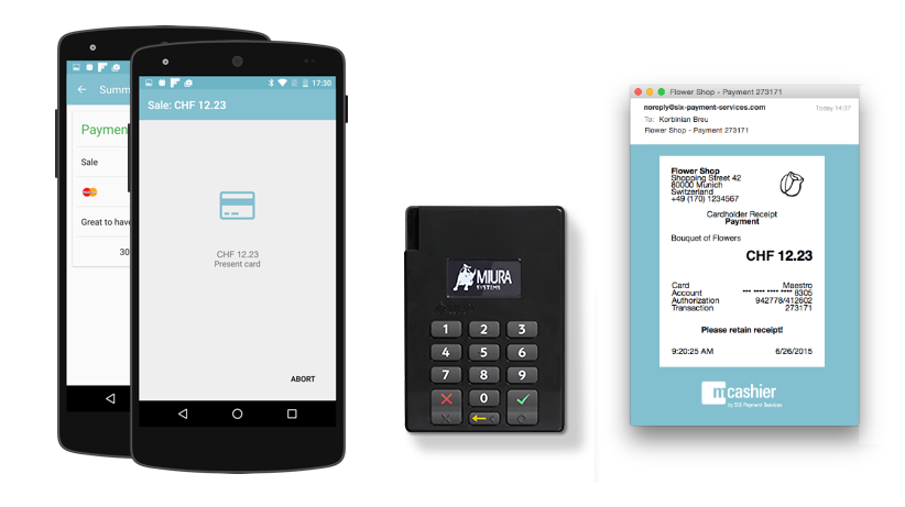 - (IBAction)paymentButtonClicked:(id)sender { MPUMposUi *ui = [MPUMposUi sharedInitializedInstance]; MPAccessoryParameters *ap = [MPAccessoryParameters externalAccessoryParametersWithFamily:MPAccessoryFamilyMiuraMPI protocol:@"com.miura.shuttle" optionals:nil]; MPTransactionParameters *tp = [MPTransactionParameters chargeWithAmount:[NSDecimalNumber decimalNumberWithString:@"5.00"] currency:MPCurrencyCHF optionals:^(id MPTransactionParametersOptionals> _Nonnull optionals) { optionals.subject = @"Bouquet of Flowers"; optionals.customIdentifier = @"yourReferenceForTheTransaction"; }]; ui.configuration.terminalParameters = ap; ui.configuration.summaryFeatures = MPUMposUiConfigurationSummaryFeatureSendReceiptViaEmail; // Add this line, if you do also want to offer printed receipts //ui.configuration.printerParameters = //ui.configuration.summaryFeatures |= MPUMposUiConfigurationSummaryFeaturePrintReceipt; UIViewController *viewController = [ui createTransactionViewControllerWithTransactionParameters:tp completed:^(UIViewController * _Nonnull controller, MPUTransactionResult result, MPTransaction * _Nullable transaction) { [self dismissViewControllerAnimated:YES completion:NULL]; UIAlertView* alert = [[UIAlertView alloc] initWithTitle:@"Result" message:@"" delegate:nil cancelButtonTitle:nil otherButtonTitles:@"OK",nil]; if (result == MPUTransactionResultApproved) { alert.message = @"Payment was approved!"; } else { alert.message = @"Payment was declined/aborted!"; } [alert show]; }]; [self showMposUiViewController:viewController]; }