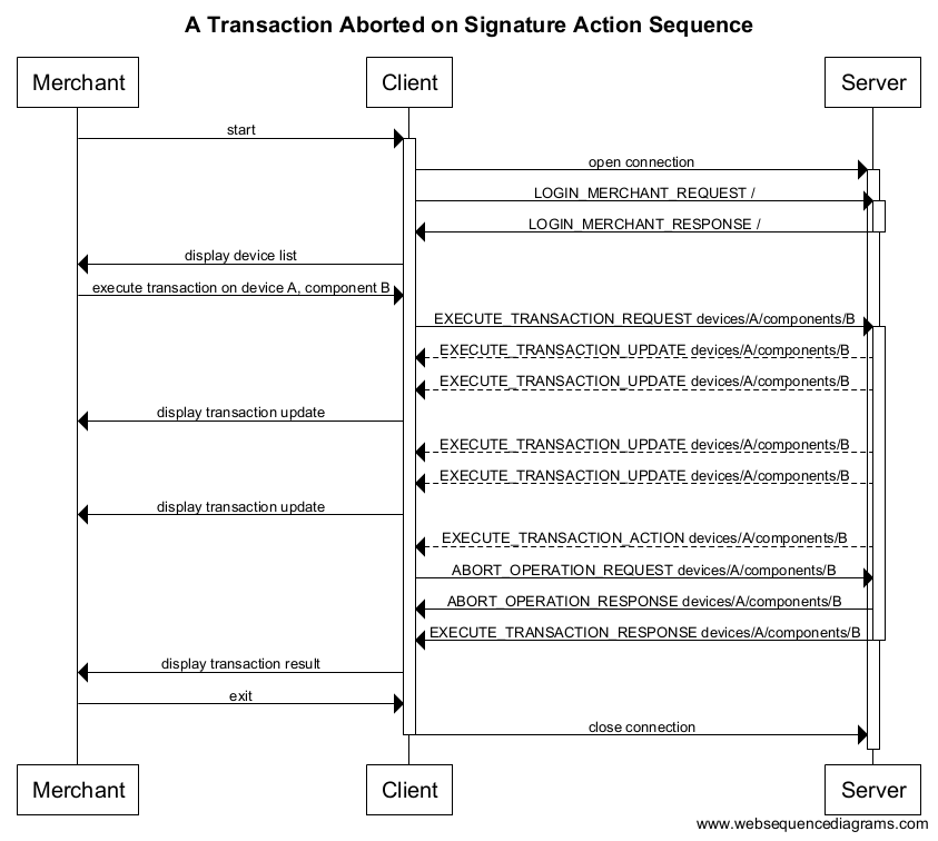 The merchant should only have the option to abort a transaction if the previous
